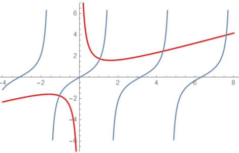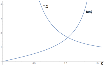 Μπορούμε να δείξουμε εύκολα ότι συνάρτηση f(ζ) εμφανίζει ελάχιστο για . Η f(ζ) είναι συνεχής και φθίνουσα στο διάστημα (0-π/2) , ενώ στο ίδιο διάστημα η tanζ είναι συνεχής και αύξουσα και γι αυτό τέμνονται μόνο μια φορά στο διάστημα αυτό. Έτσι, η λύση της εξίσωσης f(ζ)=tanζ θα είναι μοναδική στο (0-π/2).