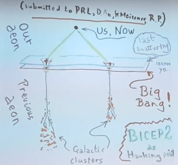 Στην εργασία των Daniel An, Krzysztof A. Meissner, Pawel Nurowski και (φυσικά) του Roger Penrose υποστηρίζεται πως στα πειραματικά δεδομένα της κοσμικής ακτινοβολίας υποβάθρου εμφανίζονται αποτυπώματα από μια προηγούμενη περίοδο του σύμπαντος, πριν την Μεγάλη Έκρηξη. Πρόκειται για αφύσικα χαρακτηριστικά σημεία στο πολύ αρχέγονο σύμπαν που δείχνουν να είναι ισχυρές πηγές τεράστιων ποσοτήτων ενέργειας.