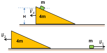 Η μάζα m φτάνει στο μέγιστο ύψος H όταν η ταχύτητά της γίνει ίση με την ταχύτητα του τριγωνικού πρίσματος.