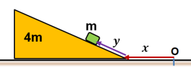 Το τριγωνικό πρίσμα μάζας 4m είναι ακίνητο και μπορεί να ολισθαίνει χωρίς τριβές στο λείο οριζόντιο επίπεδο.