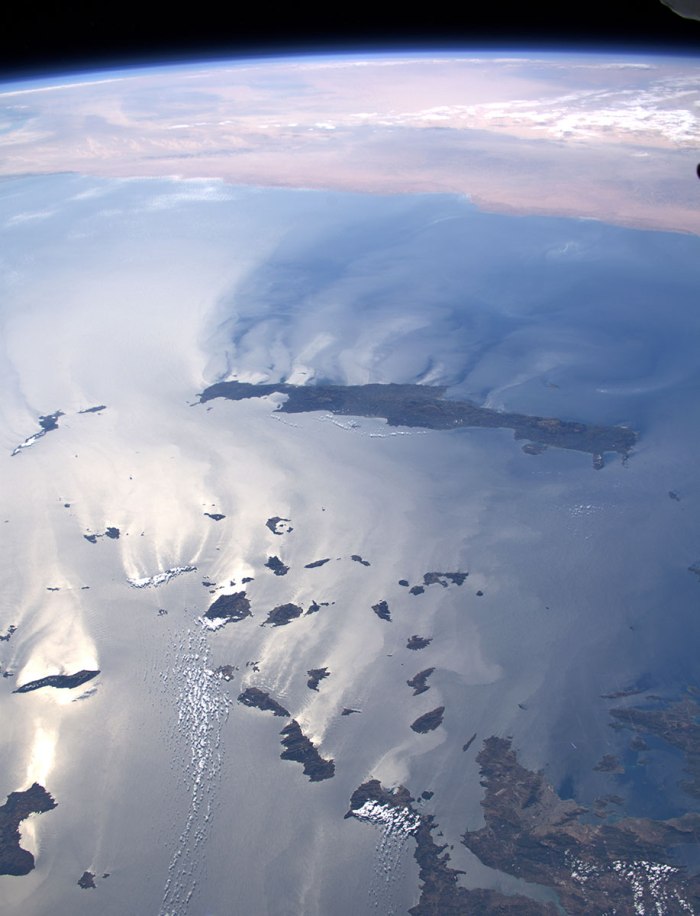 Εν τω μεταξύ ο αστροναύτης του διαστημικού σταθμού Luca Parmitano φωτογραφίζει την Γη κάνοντας σχόλια στο twitter: «Η αντανάκλαση του ήλιου αναδεικνύει την αλληλεπίδραση της θάλασσας με τη Γη». (Συμπτωματικά, στην φωτογραφία περιλαμβάνεται και η θαλάσσια περιοχή που μοίρασαν μεταξύ τους η Τουρκία και η Λιβύη πριν από λίγες ημέρες, και πλέον την θεωρούν δική τους…) Κι αν οι αστροναύτες του Διαστημικού Σταθμού φωτογραφίζουν την Ελλάδα από ψηλά, μπορούμε κι εμείς να τους το ανταποδώσουμε, απόψε στις 5:53 μ.μ., όταν ο ΔΣ θα περνάει από τον ουρανό της Ελλάδας: θα εμφανιστεί στις 10° βορειοδυτικά, θα είναι ορατός για 6 λεπτά και θα εξαφανιστεί ανατολικά-νοτιοανατολικά στις 10°.