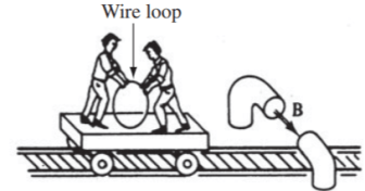 Υποθέστε ότι ένα μικρό βαγόνι τρένου, στο οποίο έχουμε τοποθετήσει έναν συρμάτινο βρόχο, περνά ανάμεσα από τους πόλους ενός ισχυρού μαγνήτη (σχήμα). Κατά τη διέλευση του βρόχου από το μαγνητικό πεδίο αναπτύσσεται μια κινησιακή ΗΕΔ που, σύμφωνα με τον κανόνα ροής είναι: