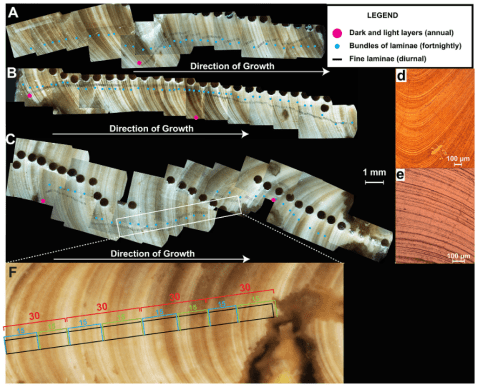 Αυτό ήταν γνωστό, αλλά επιβεβαιώνεται και από το συμπέρασμα μιας νέας επιστημονικής έρευνας, που βασίστηκε στη μελέτη των απολιθωμάτων ενός αρχαίου μαλάκιου (κάτι σαν αχιβάδα) της ύστερης κρητιδικής περιόδου. Οι ερευνητές, με επικεφαλής τον γεωχημικό Νιλς ντε Βίντερ του Ελευθέρου Πανεπιστημίου των Βρυξελλών, δημοσιεύουν τα αποτελέσματά τους στην εργασία τους με τίτλο: «Subdaily‐Scale Chemical Variability in a Torreites Sanchezi Rudist Shell: Implications for Rudist Paleobiology and the Cretaceous Day‐Night Cycle».