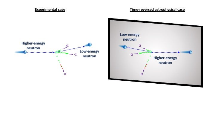 Η μέτρηση της ενεργού διατομής της n+12C→3 4He+n’ μπορεί να μας δώσει πληροφορίες για την ενεργό διατομή της αντίστροφης αντίδρασης, των τριών σωματιδίων α με ένα νετρόνιο που μας ενδιαφέρει, αφού αυτή είναι αδύνατον να πραγματοποιηθεί στο εργαστήριο.