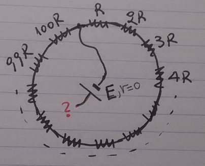100 αντιστάσεις R, 2R, 3R, 4R, ….., 98R, 99R, 100R συνδέονται κατά αύξουσα σειρά σχηματίζοντας τον κύκλο του σχήματος: