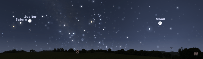 Ο νυχτερινός ουρανός στις 5:35 π.μ ξημερώματα 8 Απριλίου 2020. Κοντά στην Σελήνη ο αστέρας Στάχυς (Spica ) και πολύ αριστερά στο πλάνο αριστερά οι πλανήτες Δίας, Κρόνος και Άρης!