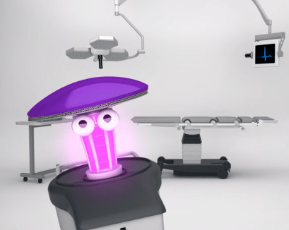 Το ρομπότ LightStrike της εταιρείας ιατρικού εξοπλισμού Xenex εκπέμπει υπεριώδες φως σε μήκος κύματος 200 έως 315 νανομέτρων, το οποίο απολυμαίνει κρεβάτια, πόμολα και άλλες επιφάνειες. Μετά από ακτινοβόληση δύο έως τριών λεπτών οι παθογόνοι μικροοργανισμοί έχουν υποστεί αρκετή βλάβη για να αδρανοποιούνται ή να καταστρέφονται.