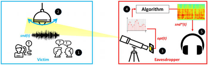 Οι θόρυβοι δημιουργούν ηχητικά κύματα, τα οποία με τη σειρά τους προκαλούν δονήσεις σε λαμπτήρες LED. Βάσει αυτής της θεωρίας ισραηλινοί ερευνητές κατάφεραν να «υποκλέψουν» συνομιλία. Καινοτομία στον χώρο κατασκοπείας;