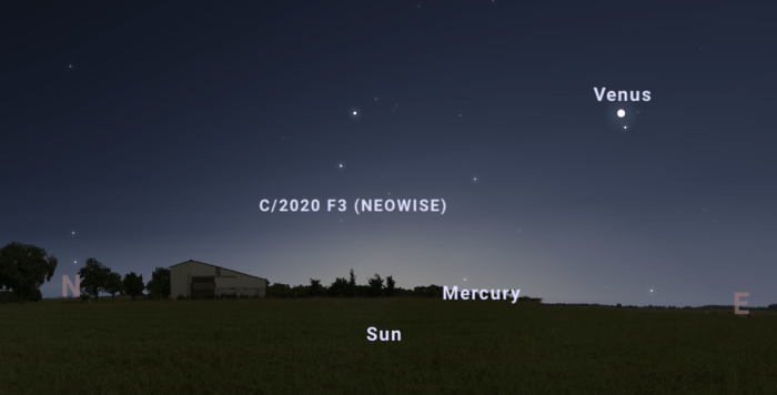 Ο κομήτης είναι εντυπωσιακός με έντονη ουρά ακόμα και διά γυμνού οφθαλμού! Επανερχόμαστε με ελαφρώς τροποποιημένες οδηγίες για το ξημέρωμα Κυριακής 12/7/2020, 5 π.μ. Βάζουμε όλοι τα ξυπνητήρια μας στις 4!