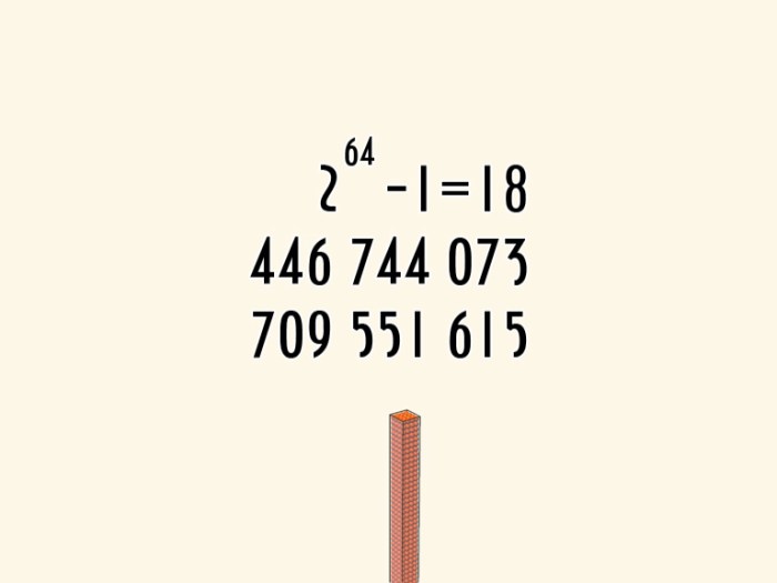Ποιο είναι το ηθικό δίδαγμα της ιστορίας; Ότι η εκθετική αύξηση είναι ύπουλο πράγμα. Το σκέφτεσαι λίγο και τα νούμερα φαίνονται μικρά. Αλλά τελικά θα σου τη φέρει. Όσο μεγάλος και να είσαι θα σου τη φέρει. Μετά από λίγα μόλις βήματα έχει γίνει τόσο μεγάλη που δεν το χωράει ο νους σου. Ο αριθμός γίνεται τόσο εξωφρενικά μεγάλος που είναι μεγαλύτερος από τα μόρια του σύμπαντος…