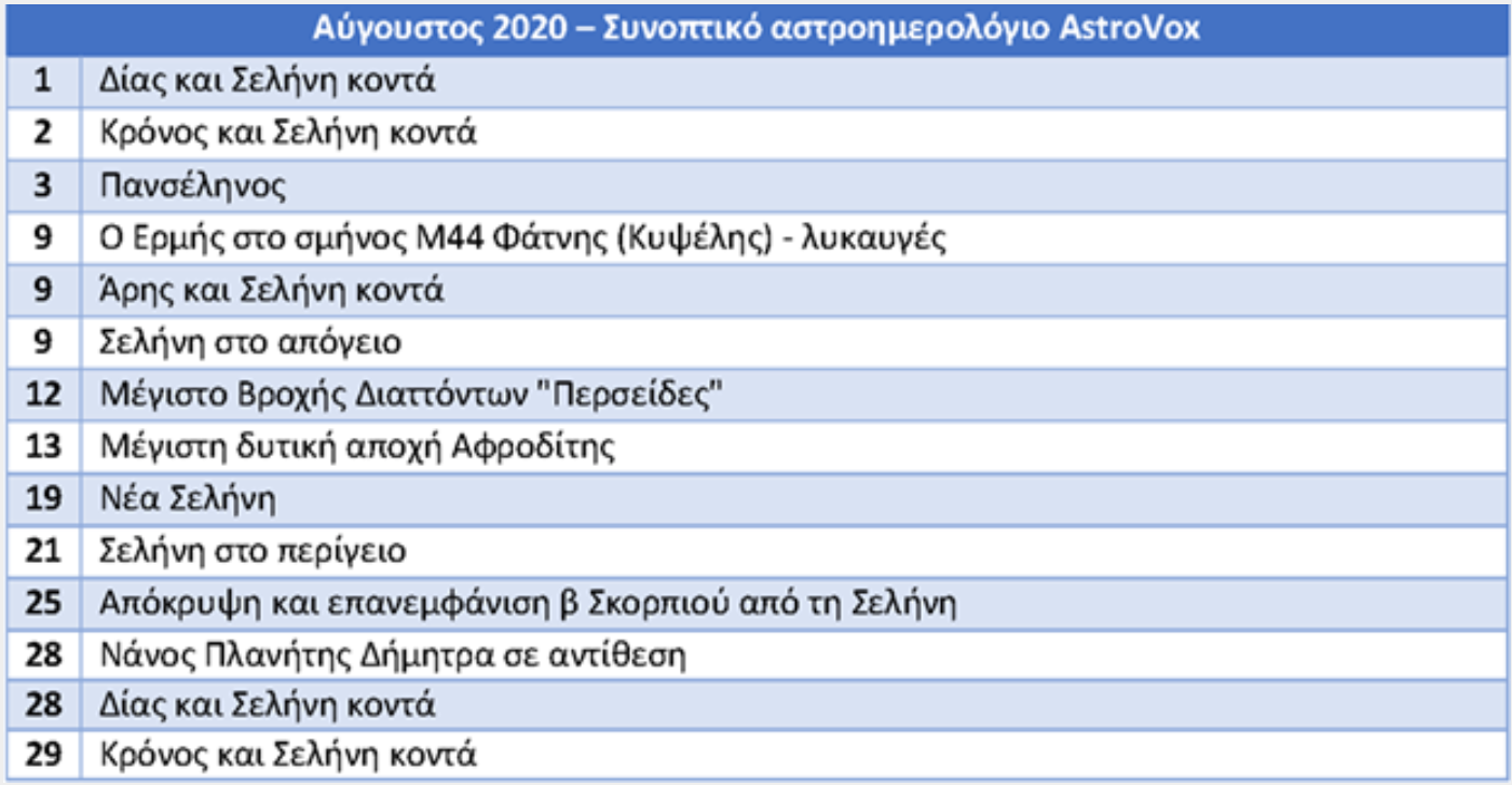 … και τα αστρονομικά γεγονότα του Αυγούστου: