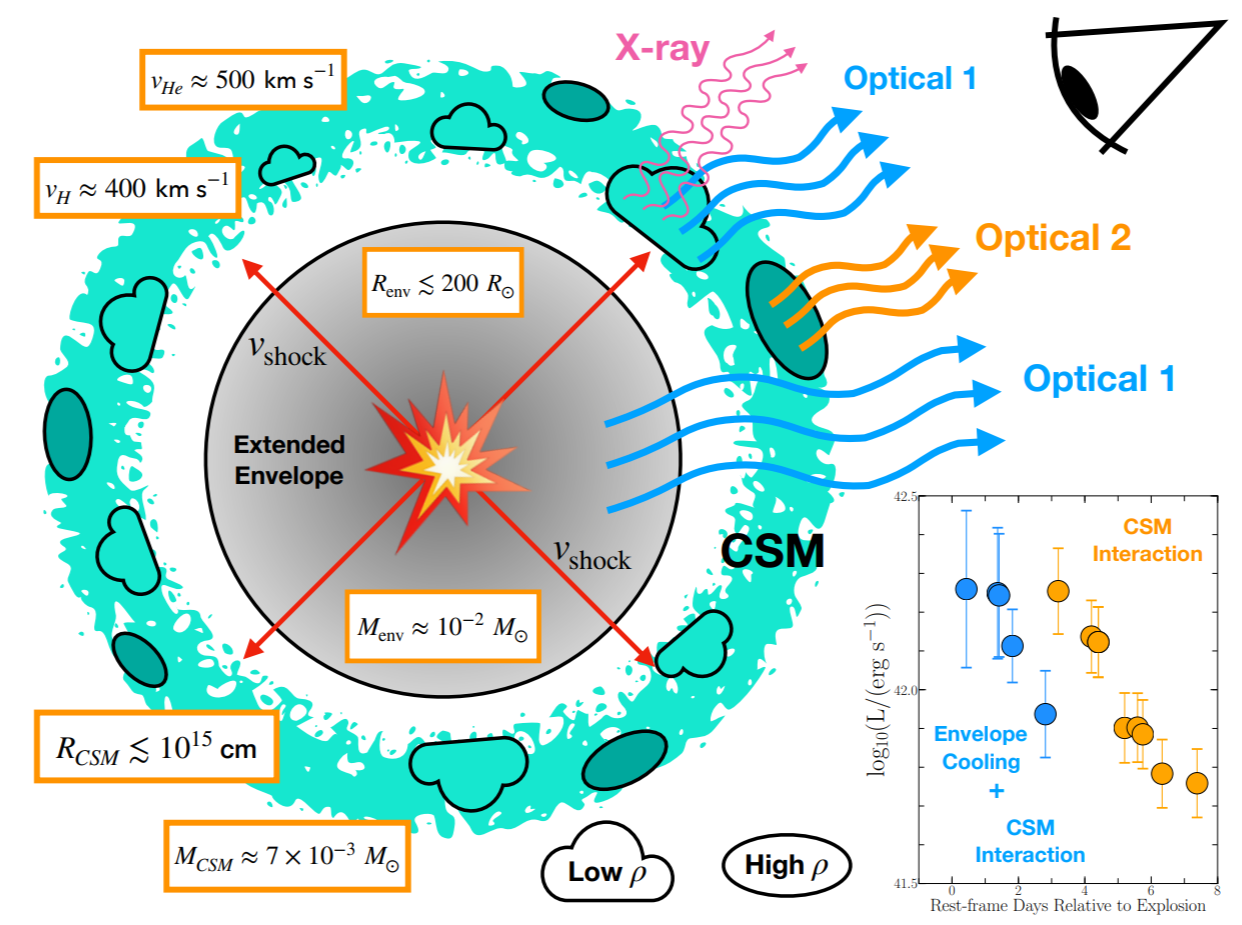 Η σύντομη έκλαμψη του σουπερνόβα SN 2019ehk μας αποκάλυψε μια διαφορετική ιστορία σχετικά με την φύση του. Σύμφωνα με τους αστρονόμους το άστρο κατά την διάρκεια των τελευταίων ημερών της ζωής του δημιουργεί ένα εξωτερικό στρώμα αερίου. Όταν το άστρο εκρήγνυται ως σουπερνόβα η εκτινασσόμενη ύλη συγκρούεται με αυτό το εξωτερικό στρώμα παράγοντας ισχυρή ακτινοβολία Χ. Η προκαλούμενη λαμπρότητα μας λέει πόσο αέριο υλικό περιέβαλλε το άστρο και πόσο κοντά ήταν το αέριο στο άστρο.