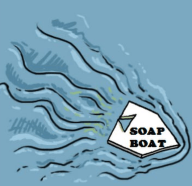 Μπορείτε επίσης να φτιάξετε μια επίπεδη βαρκούλα (όπως στην παραπάνω εικόνα) που ωθείται με «καύσιμο» μικρή ποσότητα σαπουνιού στο ένα άκρο της:
