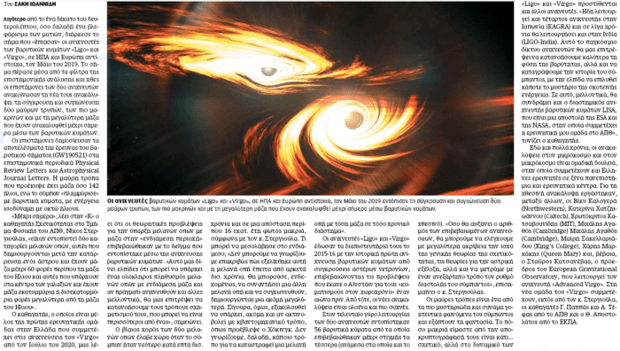 «GW190521: Η ΜΑΖΙΚΟΤΕΡΗ ΣΥΓΚΡΟΥΣΗ ΜΑΥΡΩΝ ΤΡΥΠΩΝ ΠΟΥ ΠΑΡΑΤΗΡΗΘΗΚΕ ΕΩΣ ΤΩΡΑ» :