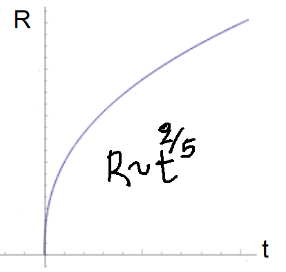 H εξίσωση (1) μας δείχνει την εξέλιξη του μεγέθους της έκρηξης (ακτίνα R) συναρτήσει του χρόνου: