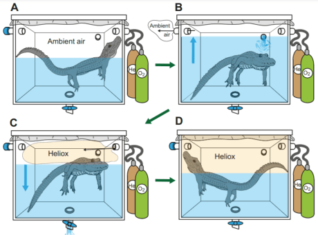 γιατί κατάφεραν να βάλουν έναν θηλυκό κινεζικό αλιγάτορα μέσα σε έναν θάλαμο εμπλουτισμένο με αέριο ήλιο, με σκοπό την μελέτη των ήχων της φωνής του [που μερικές φορές μοιάζει με κλάμα παιδιού και συνοδεύεται από τα κροκοδείλια δάκρυα].