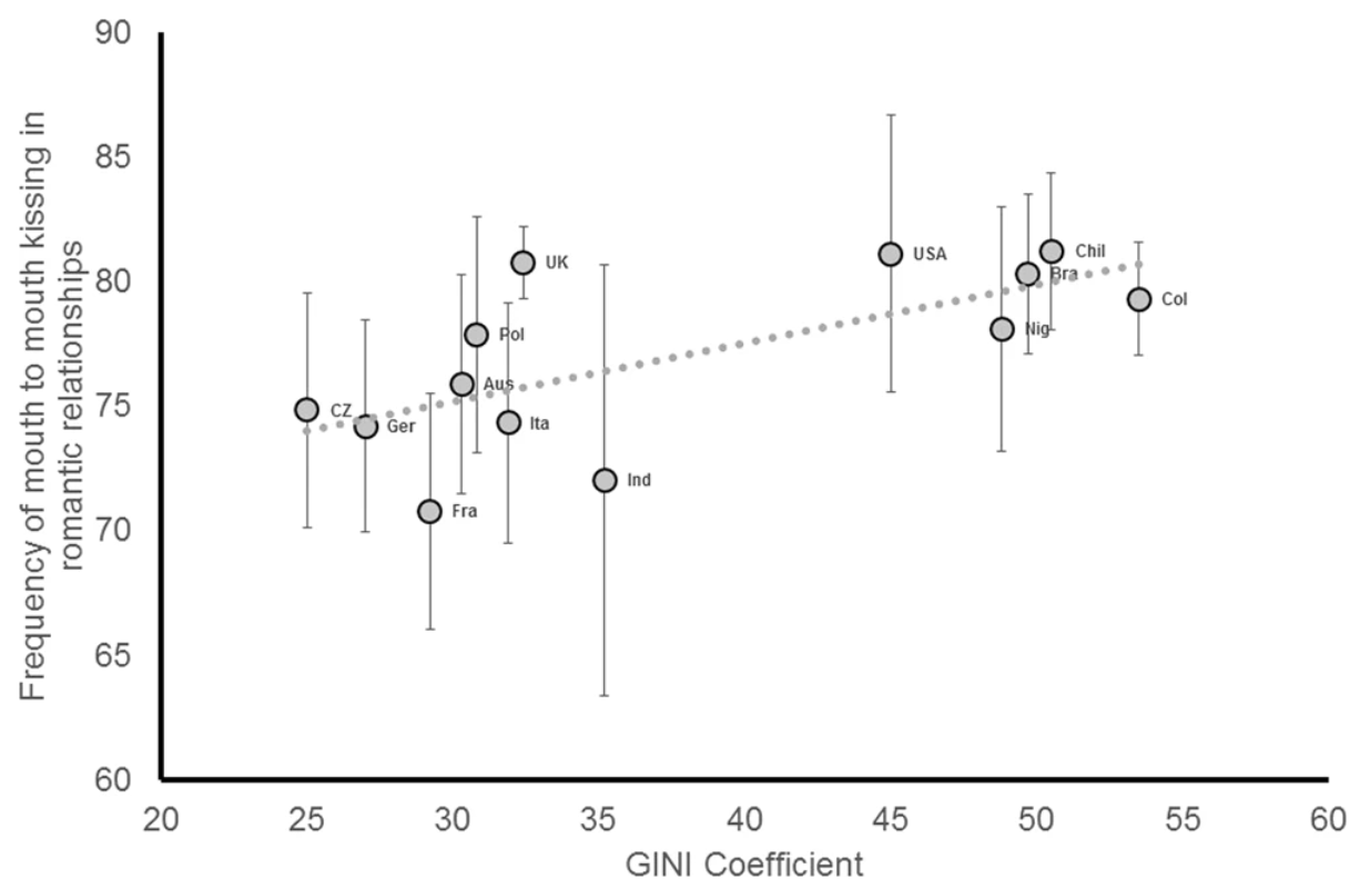 Christopher Watkins, Juan David Leongómez, Jeanne Bovet, Agnieszka Żelaźniewicz, Max Korbmacher, Marco Antônio Corrêa Varella, Ana Maria Fernandez, Danielle Wagstaff, και Samuela Bolgan, για την μελέτη τους που διερευνά την σχέση μεταξύ των ανισοτήτων εθνικού εισόδήματος σε διάφορες χώρες και …. τον μέσο αριθμό φιλιών στο στόμα!