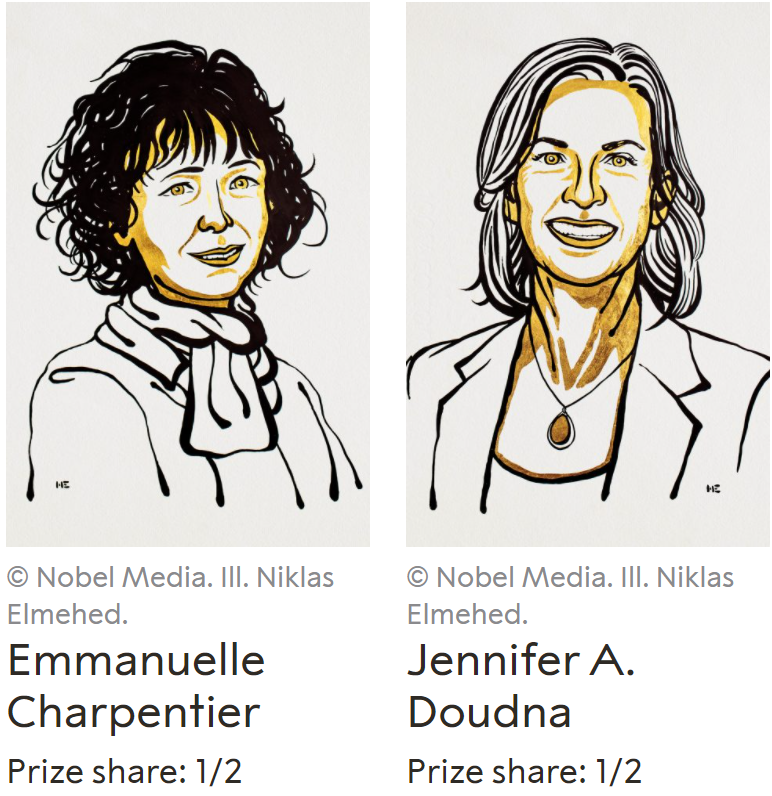 To βραβείο Νομπέλ 2020 στην Χημεία απονέμεται στις: Emmanuelle Charpentier και Jennifer A. Doudna «για την ανάπτυξη μιας μεθόδου επεξεργασίας γονιδιώματος»