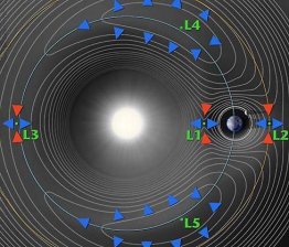 Στην περίπτωση ενός πλανήτη που περιφέρεται γύρω από ένα άστρο πολύ μεγαλύτερης μάζας υπάρχουν στην τροχιά του δυο σημεία Lagrange στα οποία αν τοποθετηθούν κάποια σώματα θα περιφέρονται ευσταθώς. Για παράδειγμα, στο σχήμα που ακολουθεί βλέπουμε τα σημεία Lagrange του συστήματος Γης και Ήλιου. Στα σημεία L4 και L5 η ισορροπία είναι ευσταθής, ενώ στα άλλα τρία ασταθής.Ο Ήλιος και οι άλλοι πλανήτες δημιουργούν επίσης σημεία Lagrange στα οποία έχουν παρατηρηθεί αστεροειδείς.