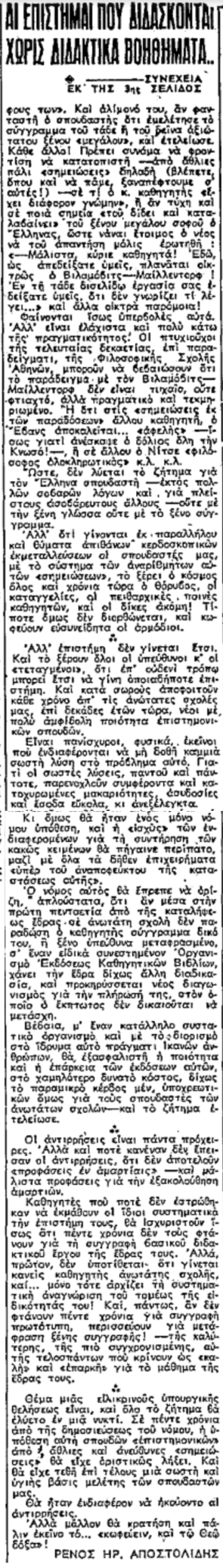 … Ο Ρένος, φιλόλογος, καθηγητής σε ιδιωτικά σχολεία, σημαντικός ανθολόγος της ελληνικής ποίησης & διηγήματος μαζί με τον πατέρα του Ηρακλή, έχει και ο ίδιος γράψει νουβέλες με πένα – λεπίδι που ανατέμνουν τον Εμφύλιο σε πλαίσιο πέραν του δίπολου αριστεράς-δεξιάς (Πυραμίδα 67, ο Α2), μεταφραστής μαζί με τους φιλόλογους γιούς του, Ήρκο & Στάντη (6τομος Μέγας Αλέξανδρος του J. G. Droysen), έγινε γνωστός για το οξύ κριτικό του λόγο, χωρίς να αποφύγει προσωπικούς χαρακτηρισμούς, πολλές φορές φλερτάροντας με το λίβελλο …