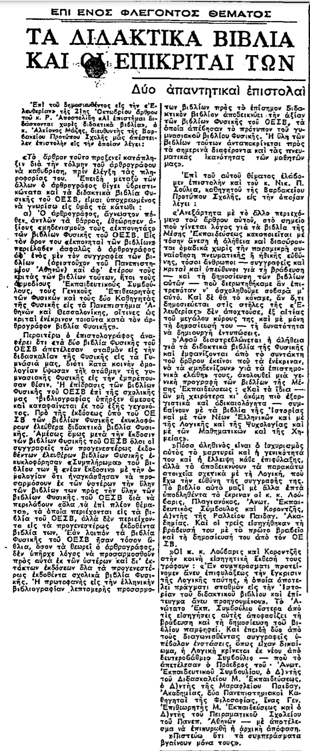 .. και η απάντηση του Αλκίνοου Μάζη στο φύλλο της 7ης Νοεμβρίου 1958: