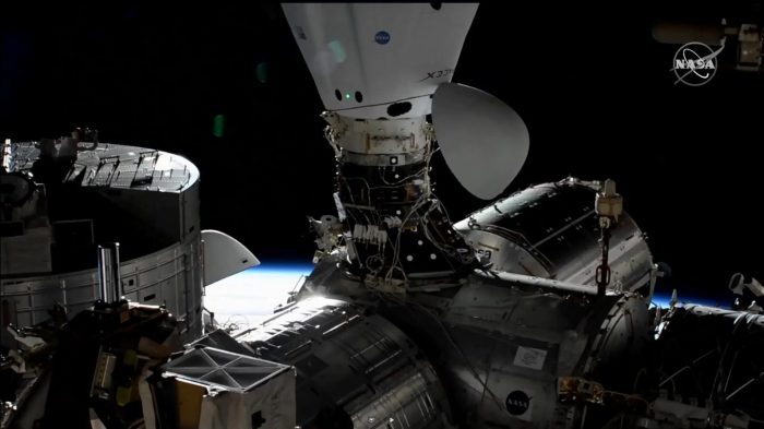 Είναι η πρώτη φορά που δύο σκάφη της εταιρείας του Έλον Μασκ καταλαμβάνουν και τις δύο θέσεις πρόσδεσης στο πολυεθνικό τροχιακό εργαστήριο.