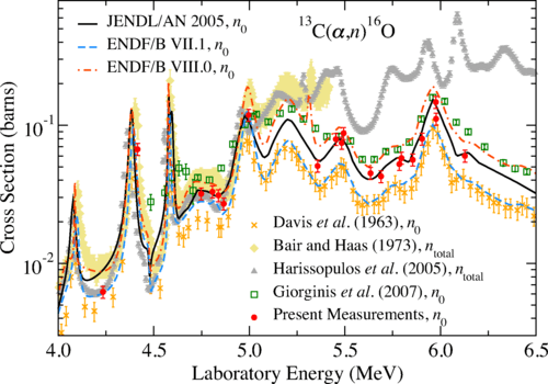 Σύμφωνα με τις νέες μετρήσεις το υπόβαθρο που οφείλεται στην πυρηνική αντίδραση 13C(α,n)16O είναι αρκετά μικρότερο. Από τις παλαιότερες μετρήσεις επισημαίνουμε τις Χαρισσόπουλος et al και Giorginis et al.