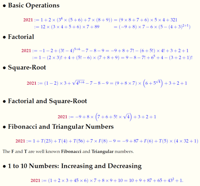 Aν τo 2021 ήταν ο αριθμός στην πινακίδα ενός αυτοκινήτου τότε θα μπορούσε να επιλυθεί π.χ. ως εξής: 20=2-1