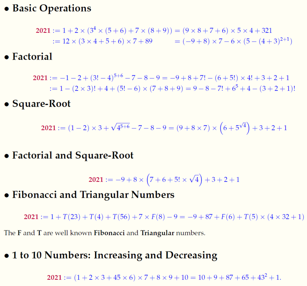 Aν τo 2021 ήταν ο αριθμός στην πινακίδα ενός αυτοκινήτου τότε θα μπορούσε να επιλυθεί π.χ. ως εξής: 20=2-1