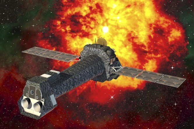 Καλλιτεχνική αναπαράσταση του διαστημικού τηλεσκοπίου XMM-Newton που ανίχνευσε περίσσεια εκπομπή ακτίνων Χ από αστέρες νετρονίων