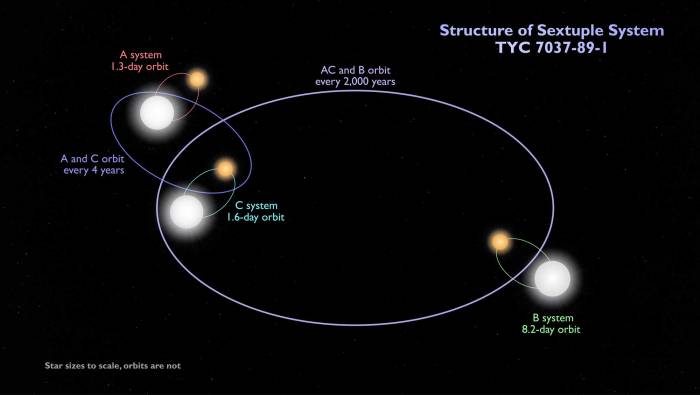 Δεν είναι το πρώτο σύστημα έξι άστρων που ανακαλύπτεται, καθώς έχουν ήδη βρεθεί μερικά ακόμη. Είναι όμως το πρώτο εξαπλό αστρικό σύστημα εξαπλών εκλείψεων, στο οποίο -όπως φαίνεται από τη Γη- κάθε φορά που ένα άστρο περνάει μπροστά από ένα άλλο, δημιουργεί μια έκλειψη ορατή στα τηλεσκόπια. Από κάποια άλλη «εξωγήινη» οπτική γωνία, τα άστρα δεν θα φαίνονταν να μπλοκάρουν το ένα το φως του άλλου.