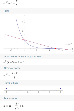 . Πρόκειται για την λύση που δίνει το πρόγραμμα wolframalpha. Οι τιμές της συνάρτησης Lambert δεν πρέπει να μας προβληματίζουν, εφόσον δεν μας προβληματίζουν οι τιμές των συναρτήσεων π.χ. ημx ή lnx. Η τιμή