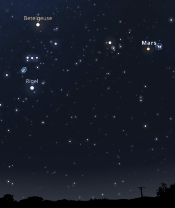 Κοιτώντας νοτιοδυτικά και χαμηλά στον νυχτερινό ουρανό απόψε, 6/3/2021 γύρω στις 9 μμ, θα διακρίνετε τον αστερισμό του Ωρίωνα. Ξεχωρίζουν τα άστρα Betelgeuse και Rigel.