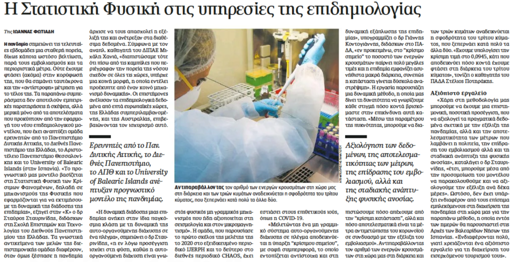 Ερευνητές από το Παν. Δυτικής Αττικής, το Διεθνές Πανεπιστήμιο, το ΑΠΘ και το University of Balearic Islands ανέπτυξαν προγνωστικό μοντέλο της πανδημίας.