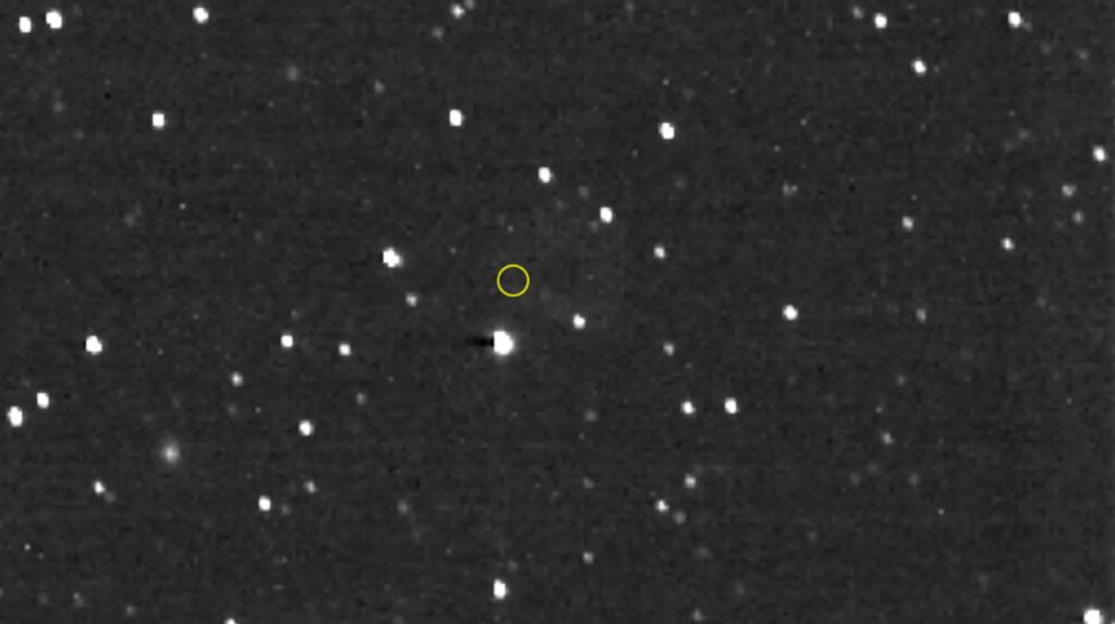 Προς τιμήν του επιτεύγματός του, το New Horizons πραγματοποίησε μια ενέργεια που ουδέποτε είχε επιχειρηθεί στο άκρο του ηλιακού μας συστήματος. Έστρεψε την κάμερά του προς το σημείο όπου βρίσκεται το Voyager 1 και έστειλε στη Γη την παρακάτω φωτογραφία: