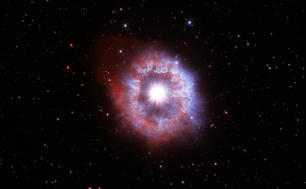 Για να γιορτάσουν την τριακοστή πρώτη επέτειο από την εκτόξευση του διαστημικού τηλεσκοπίου Ηubble οι αστρονόμοι φωτογράφισαν ξανά το άστρο AG Carinae στον αστερισμό της Τρόπιδος, που απέχει απόσταση 20.000 έτη φωτός από τη Γη. Το διαστελλόμενο κέλυφος αερίου και σκόνης που περιβάλλει το άστρο έχει εύρος περίπου πέντε έτη φωτός (όσο απέχει το το πλησιέστερο άστρο από τον Ήλιο, ο Εγγύτατος του Κενταύρου). Η τεράστια δομή δημιουργήθηκε από μία ή περισσότερες γιγαντιαίες εκρήξεις πριν από 10.000 χρόνια και η εκτοξευθείσα ύλη ισούται με περίπου 10 φορές την μάζα του Ήλιου μας.