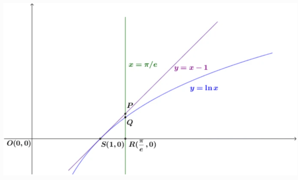 \ln \frac{\pi}{e} = QR < PR = \frac{\pi}{e}-1 ή