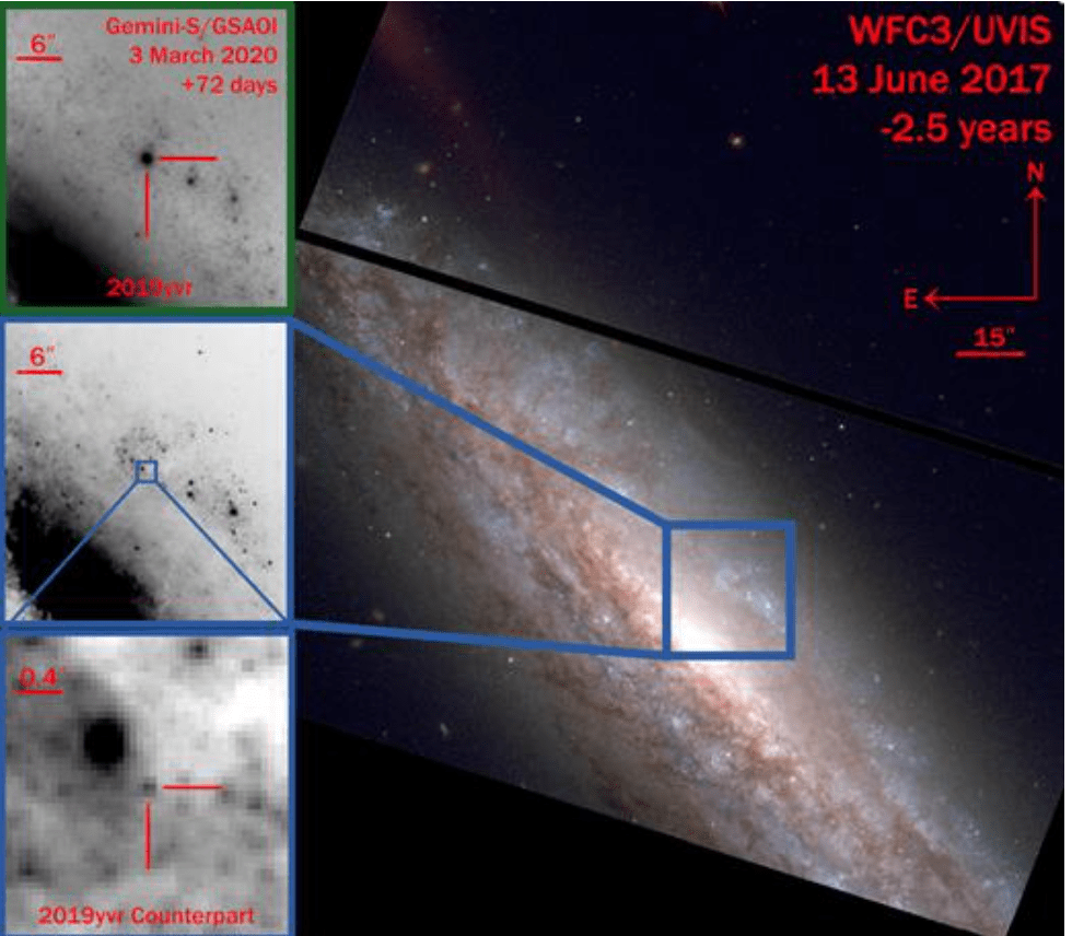 Όταν τον Δεκέμβριο του 2019, στον γαλαξία NGC 4666 που βρίσκεται περίπου 46 εκατομμύρια έτη φωτός από την Γη ανακαλύφθηκε ένα σουπερνόβα, οι αστροφυσικοί έσπευσαν να ελέγξουν παλιές παρατηρήσεις του διαστημικού τηλεσκοπίου Hubble στην ίδια περιοχή του ουρανού. Ήθελαν να βρουν το άστρο που βρίσκονταν πίσω από την έκρηξη που ονομάστηκε SN 2019yvr.