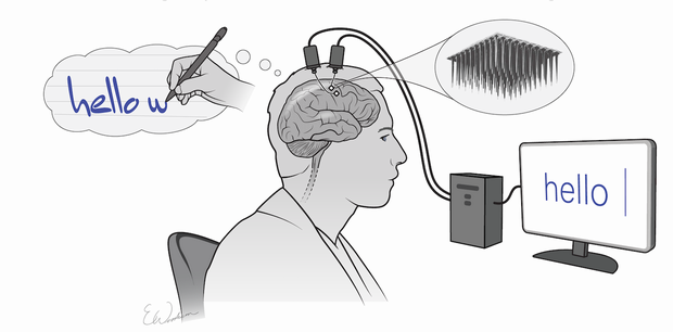 Οι επιστήμονες εμφύτευσαν δύο μικροσκοπικούς αισθητήρες αποτελούμενους από πολύ λεπτά ηλεκτρόδια, πάχους όσο μια τρίχα, 4 x 4 χιλιοστά – στην αριστερή πλευρά του εγκεφάλου του για να του επιτρέψουν να γράψει τις σκέψεις του.