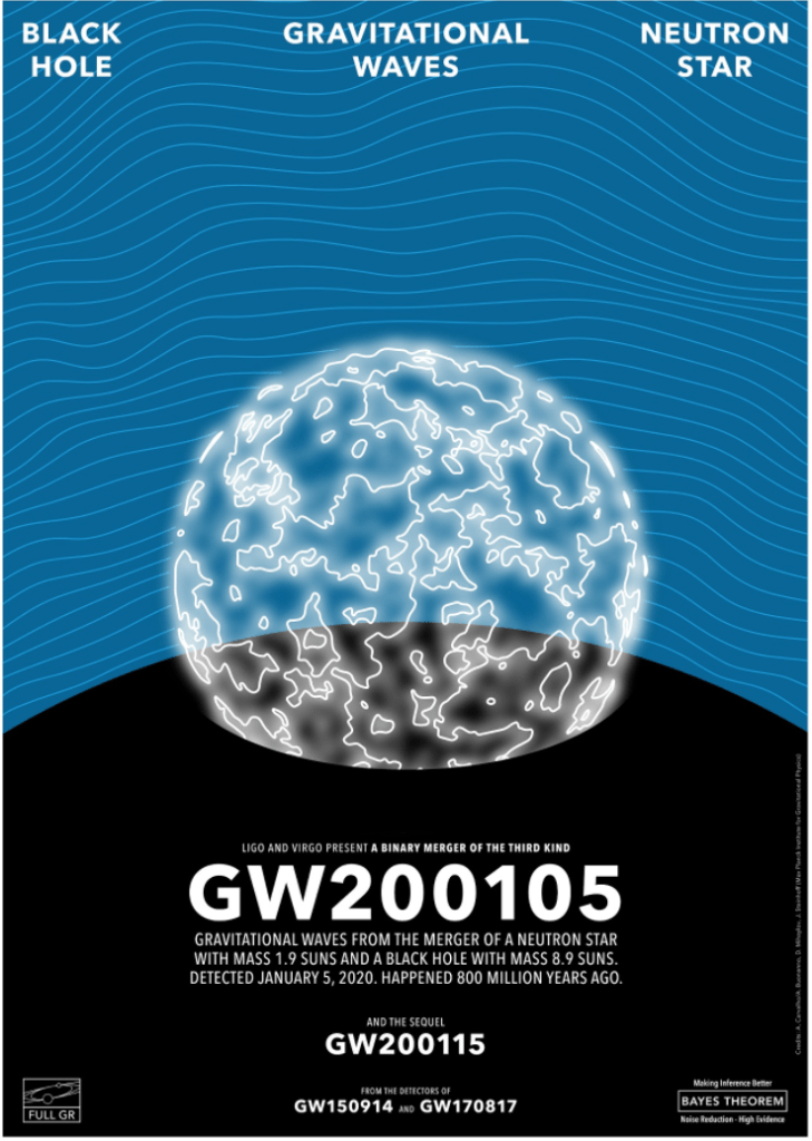 Οι ανιχνευτές βαρυτικών κυμάτων LIGO και Virgo παρατήρησαν για πρώτη φορά βαρυτικά κύματα που προκλήθηκαν από την συγχώνευση αστέρα νετρονίων με μαύρη τρύπα (Υπενθυμίζεται ότι εκτός από τα συνηθισμένα βαρυτικά κύματα που προκαλούνται από συγχώνευση μαύρων τρυπών, είχαν ήδη παρατηρηθεί βαρυτικά κύματα προκλήθηκαν από συγχώνευση δυο άστρων νετρονίων).