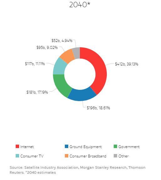 Με αυτά και με άλλα, η Morgan Stanley εκτιμά, σε τελευταία ανάλυσή της, ότι η βιομηχανία του διαστήματος μπορεί, έως το 2040, να αποφέρει παγκοσμίως έσοδα ύψους 1,1 τρισεκατομμυρίων δολαρίων ετησίως.