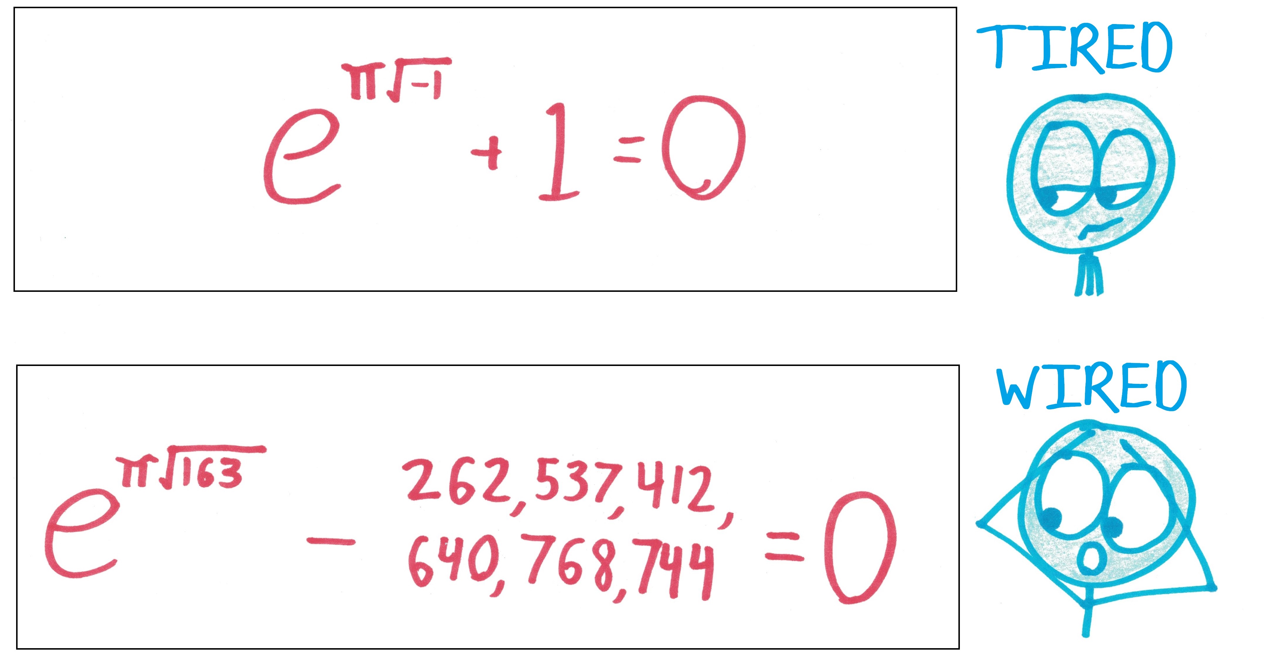 Αυτή η εντυπωσιακή προσέγγιση του προς έναν ακέραιο αριθμό δεν είναι και τόσο τυχαία, αλλά σχετίζεται με την θεωρία αριθμών και το γεγονός ότι το 163 είναι «αριθμός Heegner» .