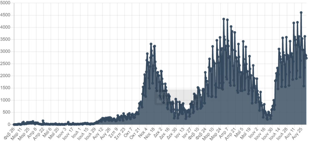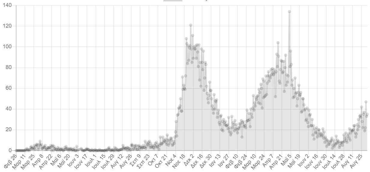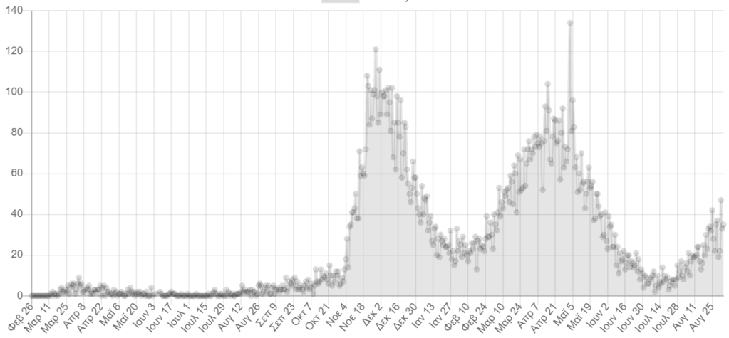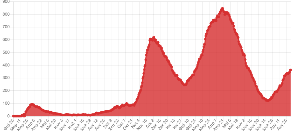 Το νέο πρωτόκολλο διαχείρισης κρουσμάτων που ανακοίνωσε το υπουργείο Παιδείας (τεστ, 50%+1 κρούσματα κ..ο.κ.), θέτει τέλος στην διδασκαλία μέσω τηλεκπαίδευσης. Άλλωστε σύμφωνα με τα επίσημα δεδομένα συγκρίνοντας κρούσματα, διασωληνωμένους και απώλειες σε σχέση με πέρυσι (αρχές Σεπτεμβρίου του 2020) βλέπουμε ότι φέτος η κατάσταση είναι κατά πολύ ‘βελτιωμένη’: