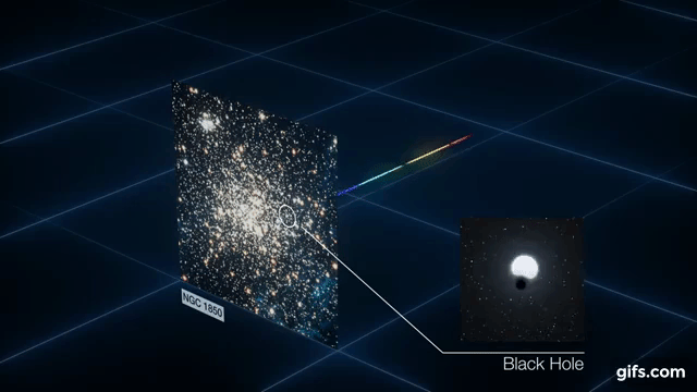 Οι αστρονόμοι του Ευρωπαϊκού Νότιου Αστεροσκοπείου στη Χιλή, ενώ διερευνούσαν το αστρικό σμήνος NGC1850 διαπίστωσαν ότι ένα άστρο περιφερόταν μόνο του διαγράφοντας μια κυκλική τροχιά, χωρίς όμως να βλέπουν στο εσωτερικό της τροχιάς του κάποιο άλλο αντικείμενο, του οποίου η δύναμη της βαρύτητας θα έπαιζε τον ρόλο της κεντρομόλου δύναμης. Το άστρο είχε μάζα πέντε φορές μεγαλύτερη από τον Ήλιο μας, m=5 M⊙=1031kg (M⊙=η μάζα του Ήλιου=2×1030 kg), η κυκλική τροχιά που διέγραφε είχε ακτίνα r1=1,5×1010m, ενώ μια πλήρης περιφορά είχε διάρκεια Τ=5,05 ημέρες. Αυτό τους οδήγησε στο συμπέρασμα ότι εκεί υπήρχε μια αόρατη μαύρη τρύπα, στην οποία οφείλεται η κυκλική κίνηση του άστρου.