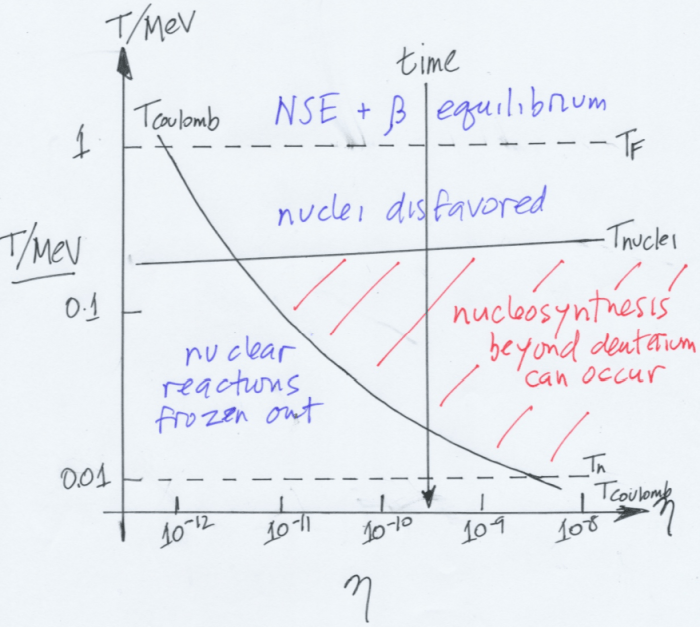 όπου h = H0/100 km∙s-1∙Mpc-1, η παραμετροποιημένη σταθερά του Hubble, ΩB το κλάσμα της βαρυονικής πυκνότητας και η10=η/10-10 το κλάσμα του αριθμού βαρυονίων προς τον αριθμό φωτονίων.