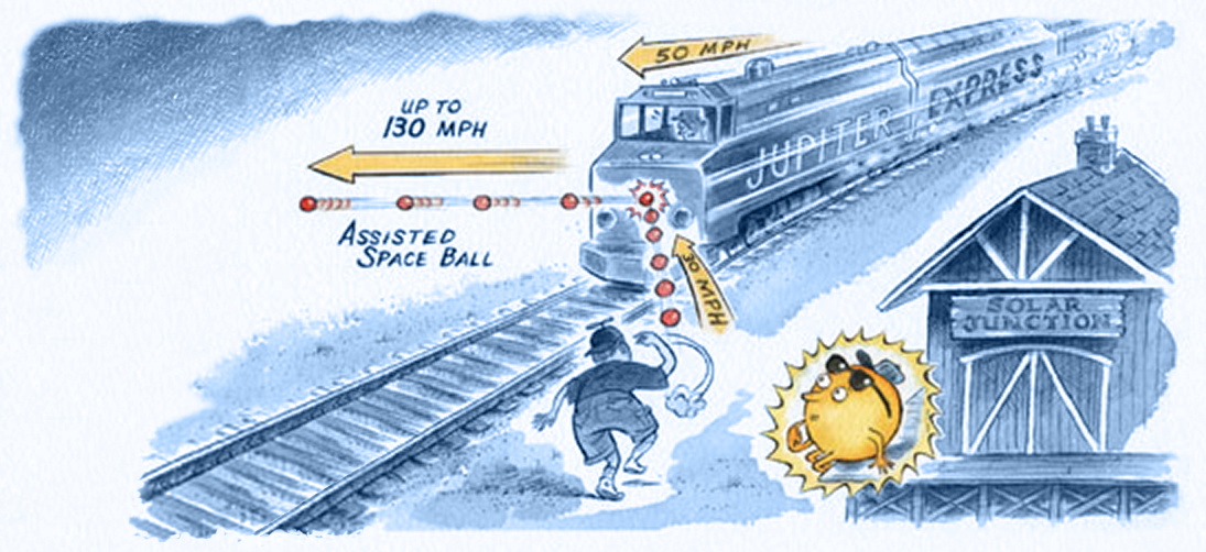 Η βαρυτική υποβοήθηση βασίζεται σε μια προσεκτικά υπολογισμένη μανούβρα, κατά την οποία το διαστημικό σκάφος περνάει πίσω από έναν πλανήτη (ή δορυφόρο) και εκμεταλλεύεται τη βαρύτητά του για να βγει από την άλλη πλευρά με μεγαλύτερη ταχύτητα. Κάτω από τις κατάλληλες συνθήκες, όταν το σκάφος κινείται προς την ίδια κατεύθυνση προς την οποία ταξιδεύει ο πλανήτης, ένα πέρασμα ακριβείας μπορεί να δώσει επιπλέον ορμή και ταχύτητα στο σκάφος και να το εκτοξεύσει προς νέα κατεύθυνση σαν σφεντόνα. Αυτό φυσικά σημαίνει ότι το σκάφος αποκτά επιπλέον ενέργεια. Και, όσο κι αν ακούγεται απίστευτο, η ενέργεια αυτή στην πραγματικότητα αφαιρείται από την ενέργεια του ίδιου του πλανήτη, μειώνοντας έστω και απειροελάχιστα την ταχύτητά του.