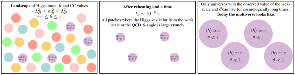Ως σημείο εκκίνησης στο μοντέλο τους υποθέτουν ότι στις πρώτες στιγμές της ύπαρξης του σύμπαντός μας υπήρχε ένα πλήθος συμπάντων. Κάθε σύμπαν περιείχε μποζόνια Higgs με διάφορες μάζες: ορισμένα από αυτά περιείχαν ένα βαρύ μποζόνιο Higgs, ενώ άλλες περιείχαν μια πολύ ελαφρύτερη εκδοχή.