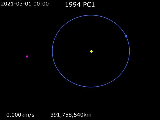 Ο μεγάλος διαστημικός βράχος κινήθηκε με ταχύτητα 70.415 χιλιομέτρων την ώρα και δεν θα ξαναπλησιάσει τόσο τη Γη στον αιώνα αυτό, σύμφωνα με τους υπολογισμούς που έκαναν οι αστρονόμοι της Αμερικανικής Διαστημικής Υπηρεσίας (NASA). Είχε ανακαλυφθεί το 1994 και διαπιστώθηκε ότι συμπληρώνει μια περιφορά γύρω από τον Ήλιο κάθε 572 μέρες. Το 1933 είχε πλησιάσει περισσότερο τη Γη, σε απόσταση 1,1 εκατ. χλμ., ενώ δεν θα ξαναβρεθεί τόσο κοντά έως το 2105, σύμφωνα με τις εκτιμήσεις της NASA και του Caltcech.
