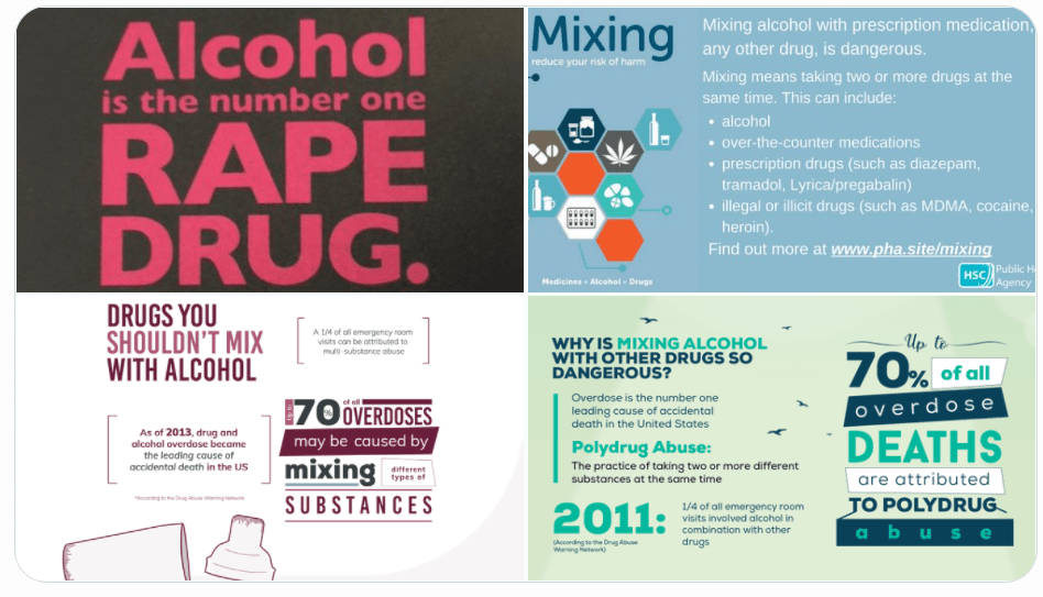 Ανέφερα πριν ότι το αλκοόλ είναι κατασταλτικό.. Είναι και από τις πιο συχνές ουσίες κατάχρησης σε βιασμούς. Επιπλέον, επειδή τα φάρμακα αυτά καταχράζονται με μίξη σε αλκοόλ, ο συνδυασμός προκαλεί συνέργεια – δλδ επιφέρει πολλαπλή καταστολή, με κίνδυνο ανακοπής & θανάτου.