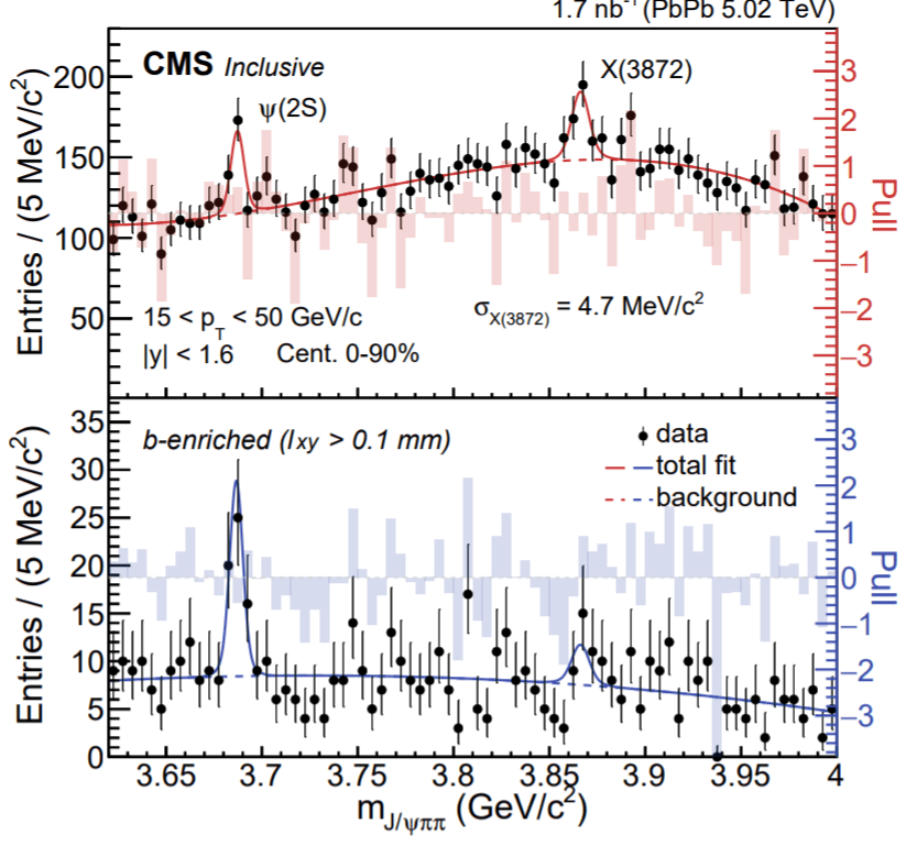 Πριν από μερικές μέρες δημοσιεύθηκαν και τα πρώτα πειραματικά δεδομένα που δείχνουν την παραγωγή του X(3872) σε πλάσμα κουάρκ-γλοιονίων που προκύπτει από τις συγκρούσεις ιόντων μολύβδου [Evidence for X(3872) in Pb-Pb collisions]. Ανιχνεύθηκαν περίπου 100 από τα βραχύβια σωματίδια X(3872). Ο εντοπισμός τους μέσα σε έναν ωκεανό άσχετων σωματιδίων αποτελεί τρομερό επίτευγμα.